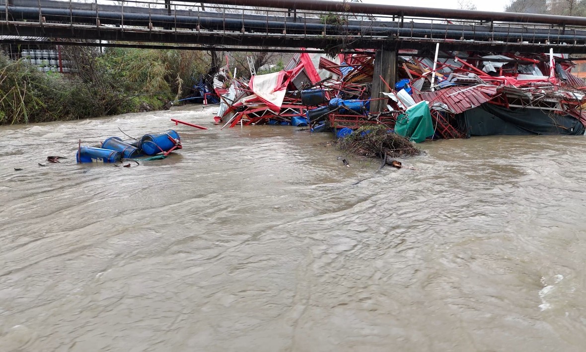 Manavgat Irmağı taştı, Antalya-Alanya otoban şantiyesi sular altında kaldı