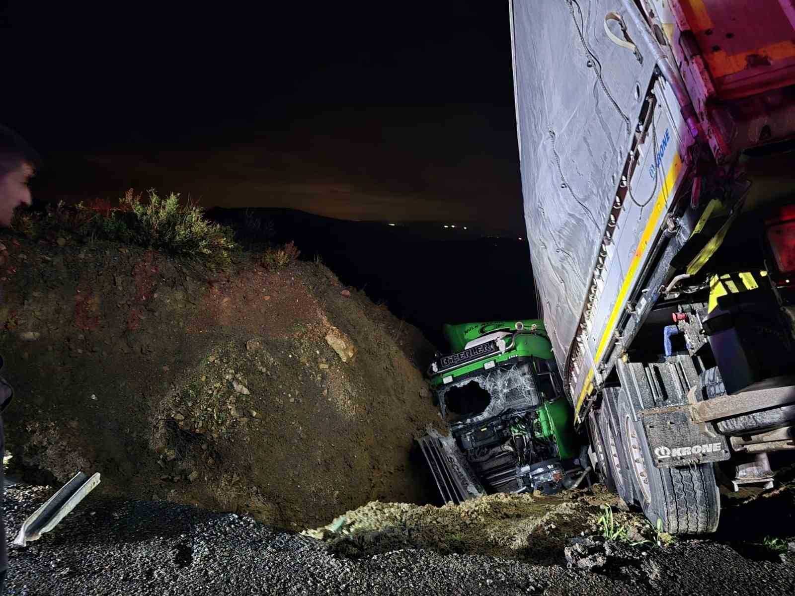 Manavgat’ta şarampole devrilen tırın sürücüsü ağır yaralandı