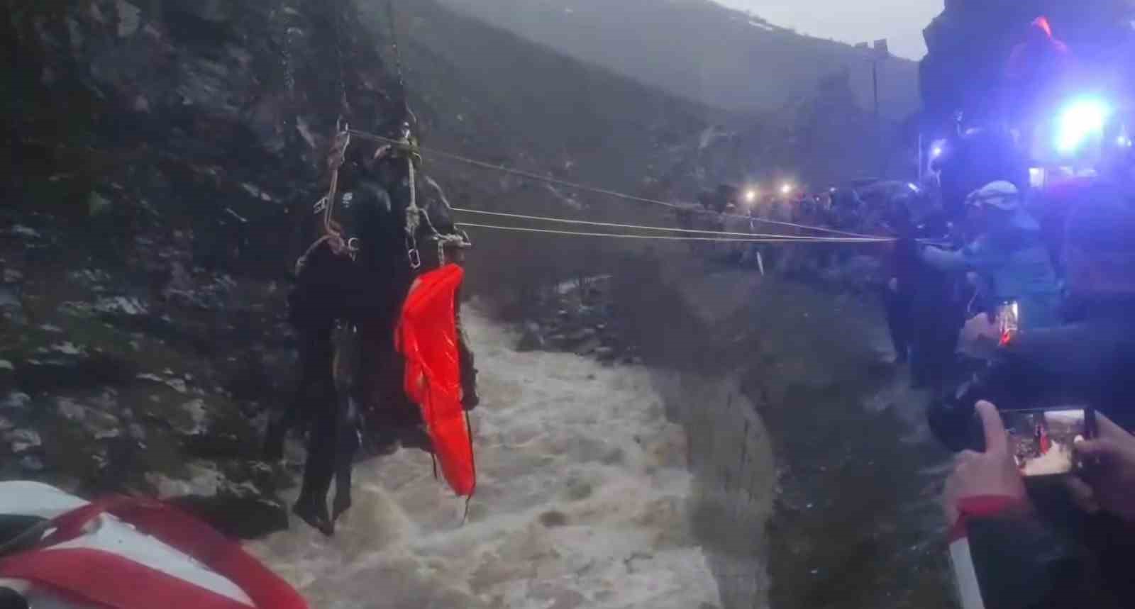 Bitlis’in Tatvan ile Hizan ilçeleri arasında dereye uçan beton mikserinin sürücüsünün aracın yakıt deposu kısmına sıkışarak hayatını kaybettiği belirlendi. Hazo Deresi mevkiinde yaşanan kazada beton mikseri dereye uçmuştu. Vinç yardımıyla dereden çıkarılan araçta yapılan incelemede sürücüye ulaşılamamış ve sürücünün bulunduğu taraftaki camını kırık olduğu tespit edilmişti. Sel sularına kapılarak kaybolduğu değerlendirilen beton mikseri sürücüsü E.Ç.’nin aracın yakıt deposu kısmına sıkıştığı belirlendi. Ekipler tarafından bulunduğu yerden çıkarılan sürücünün hayatını kaybettiği tespit edildi. AFAD, jandarma ve gönüllü ekipler tarafından araçtan çıkarılan sürücünün cansız bedeni sağlık ekiplerine teslim edildi. Kazayla ilgili soruşturma devam ediyor.
