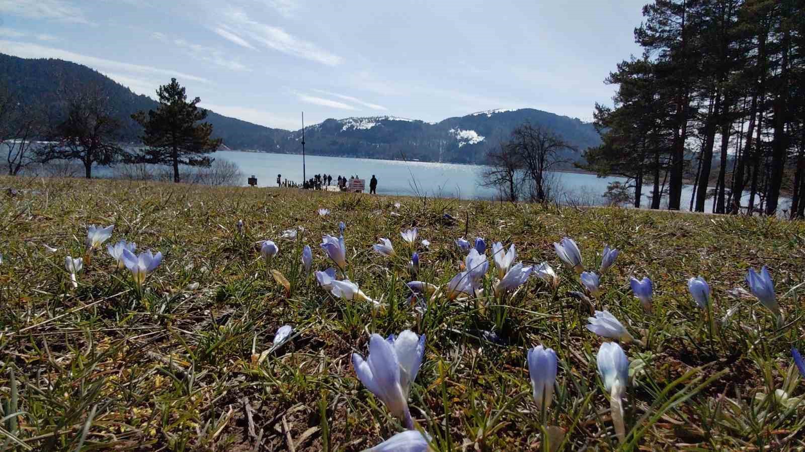 Bolu’nun önemli turizm merkezlerinden olan Abant Gölü Milli Parkı’nda hava sıcaklıklarının artmasıyla birlikte karlar erimeye başladı. Karların erimesiyle baharın müjdecisi olarak bilinen çiğdem çiçekleri de ortaya çıktı. Türkiye’nin gözde turizm merkezleri arasında bulunan Abant Gölü Milli Parkı, dört mevsim ziyaretçilerini ağırlamaya devam ediyor. Milli Park’ta kış mevsimi boyunca aralıklarla devam eden kar yağışı, bahar ayının gelmesiyle son buldu. Hava sıcaklıklarının yükselmesiyle eriyen karlar, yerini baharın müjdecisi çiğdemlere bıraktı. Güzel havayı gören vatandaşlar Milli Park’a akın etti. Ziyaretçiler, çiğdemlerle süslenen doğada bol bol fotoğraf çekerek baharın gelişini görüntüledi.