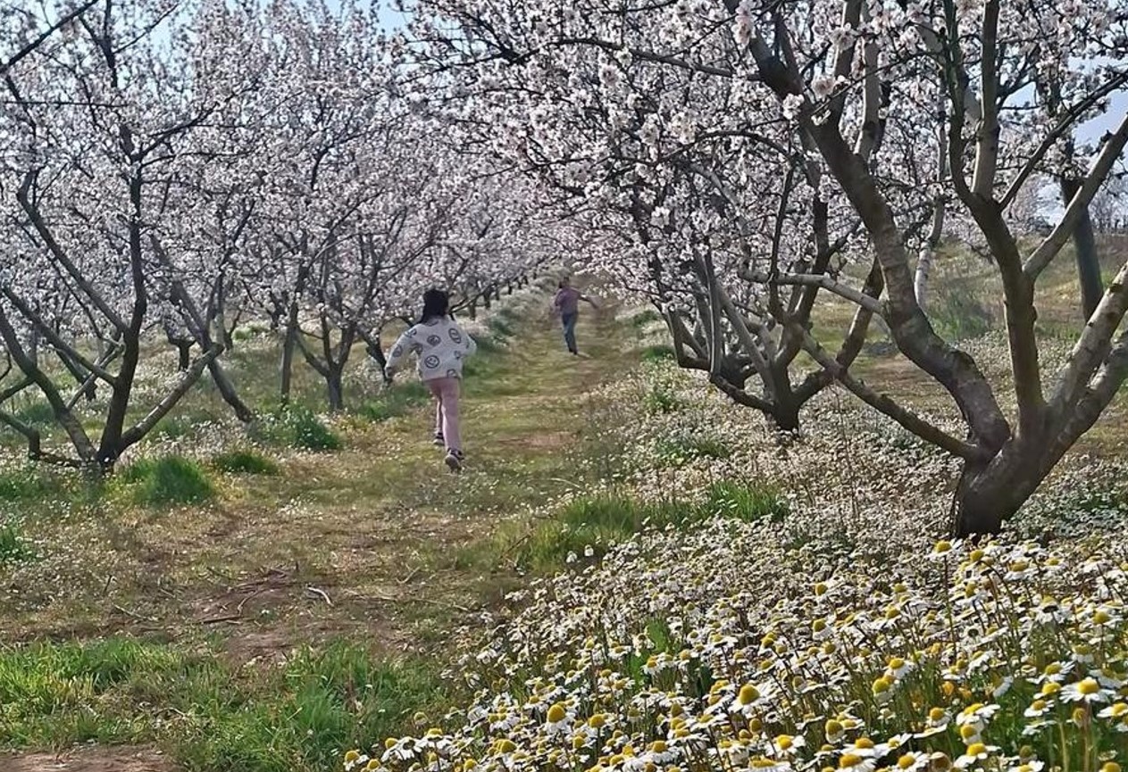 Manisa’nın Sarıgöl ilçesine bağlı Dadağlı Mahallesi’nde bodur badem ağaçlarının çiçek açmasıyla ortaya çıkan beyaz örtü, yeşil otlar ve papatyalarla birleşerek kartpostalları aratmayan görüntüler oluşturdu. Manisa’nın Sarıgöl ilçesine bağlı Dadağlı Mahallesi’nde bodur badem bahçelerinde ağaçların çiçek açmasıyla birlikte doğa adeta beyaza büründü. Baharın gelişiyle birlikte badem ağaçlarının bembeyaz çiçekleri, yeşeren otlar ve açan papatyalarla birleşerek kartpostallık manzaralar oluşturdu. Dadağlı Mahallesi’nde bulunan bodur badem bahçelerinde tüm ağaçların çiçek açmasıyla ortaya çıkan renk cümbüşü, görenleri adeta büyülüyor. Bahçeye gelen vatandaşlar bu eşsiz manzara eşliğinde fotoğraflar çekerek doğanın sunduğu güzelliğin keyfini çıkarıyor. Mahalle sakinlerinden Halil Uygun, yıllar önce İlçe Tarım ve Orman Müdürlüğü tarafından bodur badem fidanlarının bölgeye dikildiğini belirterek, "Yıllar önce İlçe Tarım ve Orman Müdürlüğü tarafından elle kırılabilen bodur badem fidanları dağıtılmıştı. Tarla komşumuz da 5-6 dekarlık tarlasına bu fidanlardan dikmişti. Şimdi tüm badem ağaçları çiçek açtı. Toprak yeşerdi, papatyalar açtı. Ortaya çıkan manzara bizleri dinlendiriyor. Buraya ailece gelip fotoğraflar çekiliyoruz." dedi. Bodur badem ağaçlarının özellikle kırsal alanlarda fazla sulama istemeden yetiştirilebildiği, üçüncü yılda verime başladığı ve yedi yaşına geldiğinde ağaç başına 20 ile 50 kilogram arasında ürün verdiği belirtildi. Elle kırılabilen özelliği sayesinde bodur bademin piyasada da yoğun ilgi gördüğü ifade edildi.