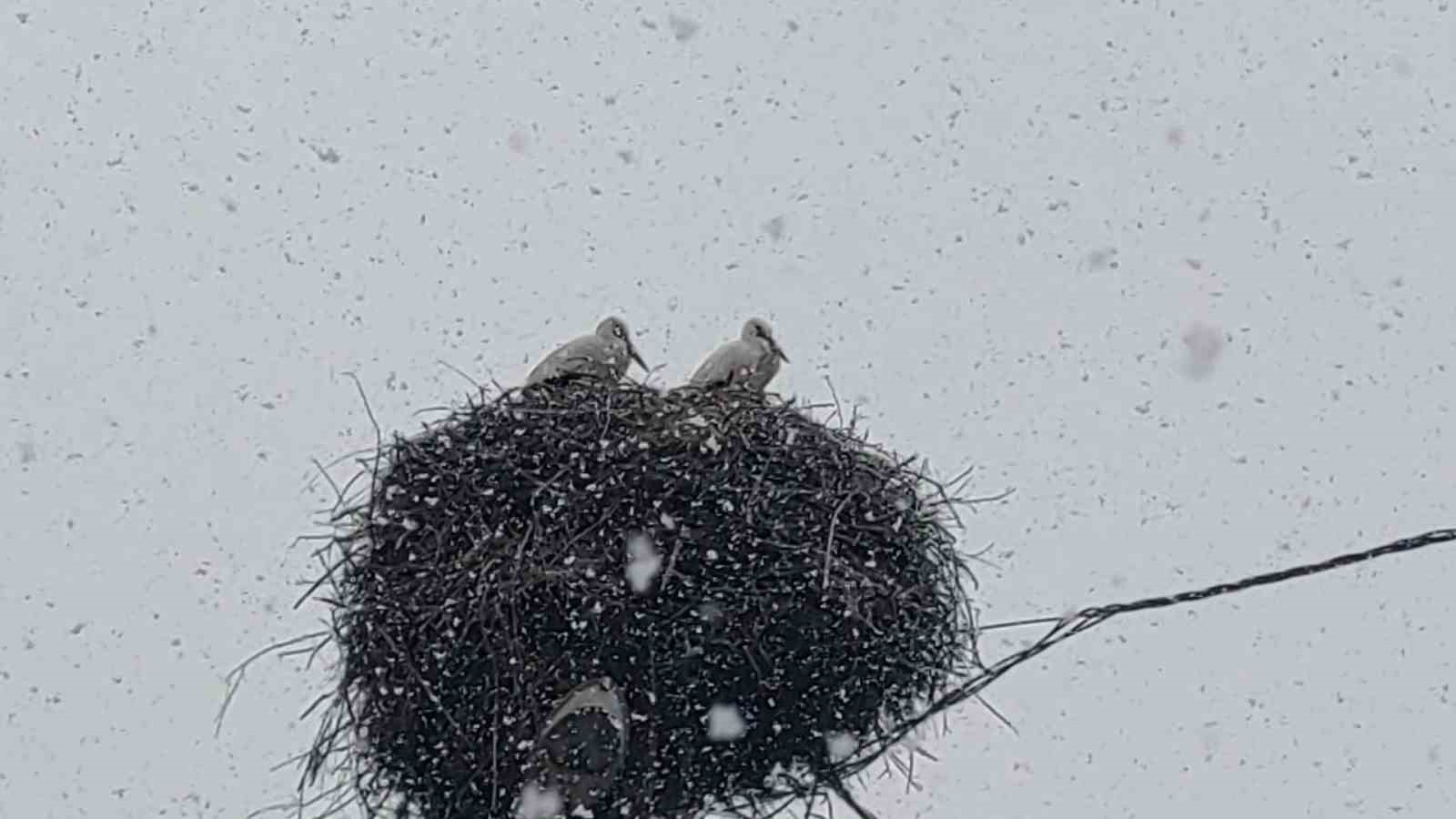 Baharın habercisi olarak bilinen leylekler, Bingöl’e erken gelince kar yağışına yakalandı. Meteorolojinin uyarıda bulunduğu Bingöl’de sabah saatlerinde kar yağışı etkili oldu. Kar yağışı kentte aralıklarla sürerken, şehir merkezinde yüksek gerilim ve aydınlatma direkleri üzerinde bekleyen leylekler dikkat çekti. Genellikle bahar aylarında Bingöl ve çevresine gelen göçmen kuşların erken görülmesi vatandaşların ilgisini çekti. Kar yağışının yer yer etkisini sürdürdüğü kentteki leylekler farklı bir manzara oluşturdu.