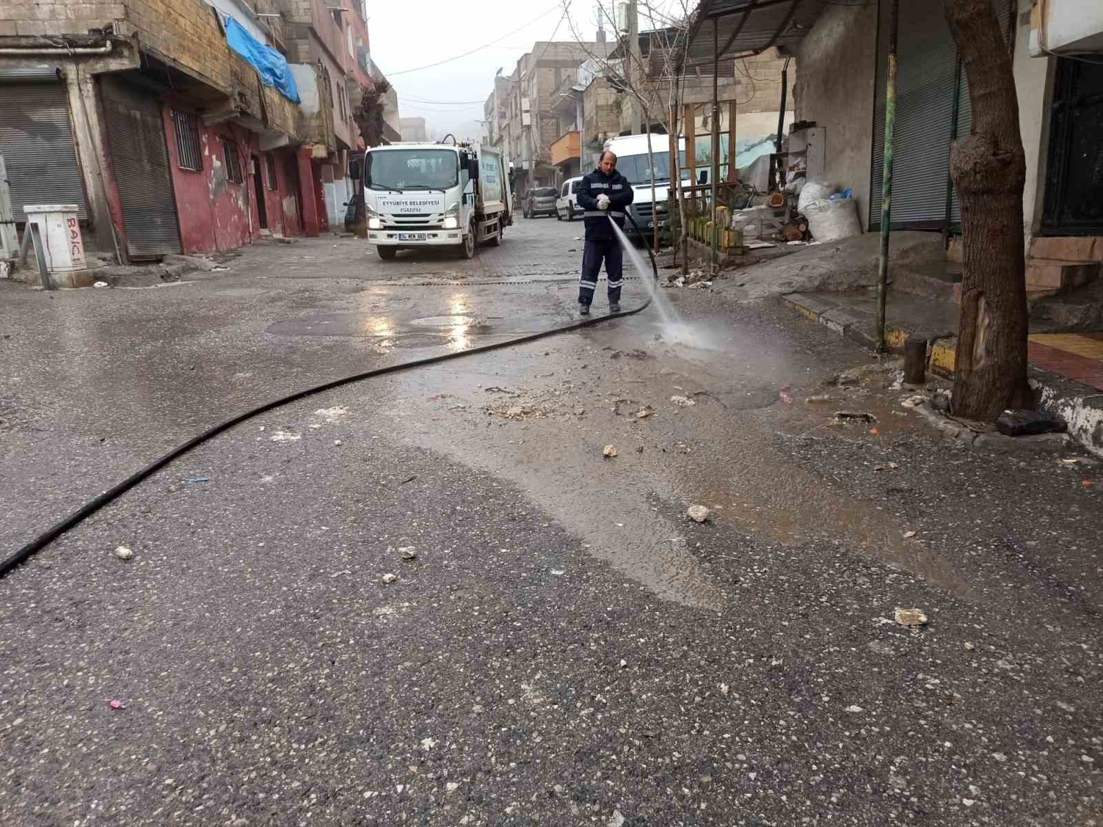 Şanlıurfa’nın Eyyübiye ilçesinde harekete geçen belediye ekipler, kısmi sel baskınlarının yaşadığı mahallelerde temizlik çalışmalarını sürdürüyor. Şanlıurfa’da 22 Mart’ta etkili olan sağanak yağışlar, Eyyübiye ilçesindeki bazı mahallelerde küçük çaplı baskınlara neden oldu. Can kaybının olmadığı su baskınlarını yerinde inceleyen Eyyübiye Belediye Başkan Mehmet Kuş, vatandaşlara geçmiş olsun dileklerini ileterek tüm ekipleri alarm durumuna geçirdi. Başkan Kuş’un talimatıyla, baskına maruz kalan evlerde ve sokaklarda çalışma başlatıldı. Fen işleri, çevre koruma ve kontrol, temizlik işleri ve zabıta müdürlüğü ekiplerinin aralıksız sürdürdüğü çalışmalarla, çok sayıda ev ve sokak temizlendi. Mahalle muhtarları, temizlik çalışmalarına nezaret etti.