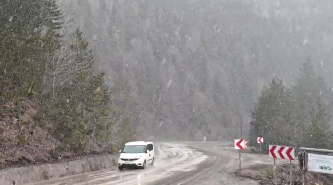 Karabük’ün yüksek kesimlerinde kar yağışı etkili oluyor. Hava sıcaklıklarının düştüğü Karabük’ün yüksek kesimlerinde kar yağışı yeniden başladı. Karabük-Bartın kara yolunun 1030 rakımlı Ahmetusta mevkisinde başlayan kar yağışı, bölgede kısa sürede etkisini gösterdi. Güzergahı kullanan vatandaşlar, o anları cep telefonu kamerasıyla kayda aldı.