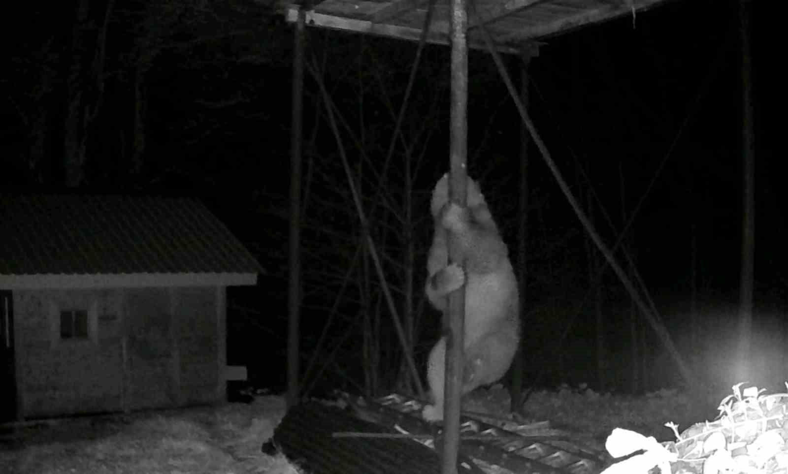 Rize’de aç kalan ayı karnını doyurmak için keşfettiği kovanlara ulaşmak için düz demire tırmanmaya çalıştı. O anlar güvenlik kamerasına anbean yansıdı. Rize’nin Hemşin ilçesine bağlı Mutlu Mahallesi’nde kış uykusundan uyanarak yiyecek bir şeyler arayan ayı yerden yüksekte kurulan kovanların konulduğu standı keşfetti. Şefik İnce’ye ait kovanların altında bir keşif yapan ayı demire tırmanarak kovanlara ulaşmaya çalıştı ancak bunda başarılı olamadı. O anlar ise kovan sahibinin kurduğu güvenlik kamerasına anbean yansıdı. Görüntülerde ayının kovanlara ulaşmak için birden fazla kez demire tırmanmaya çalıştığı gözlendi.