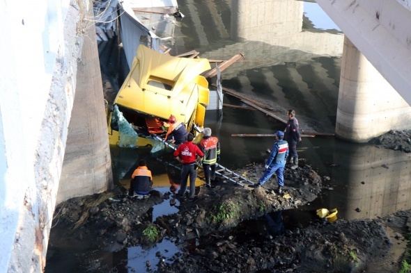Tır sürücüsü A.R.A. sıkıştığı yerden ekiplerce suya kapılmaması için film senaryolarını aratmayan bir operasyonla kurtarıldı. Kazada yaralanan 7 kişi, ambulanslarla kentteki hastanelere kaldırıldı.