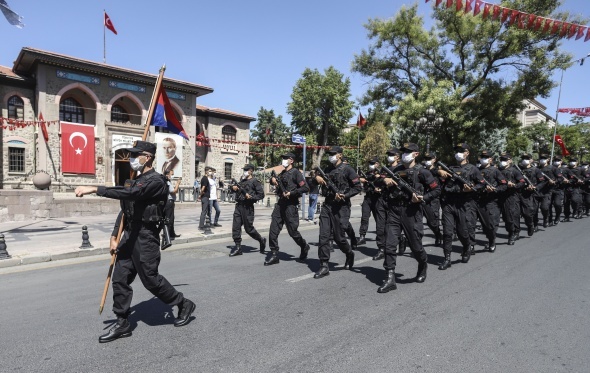 Kortejde askeri birlikler, polis ekipleri, mehter takımı, Osmanlı ve Cumhuriyet dönemine ait askeri kıyafetler giyen askerler ve sivil savunma ekipleri yer aldı. Geçit töreni boyunca yol kenarında bulunan vatandaşlar, Türk bayraklarıyla polis ve askerlere sevgi gösterilerinde bulundu.
