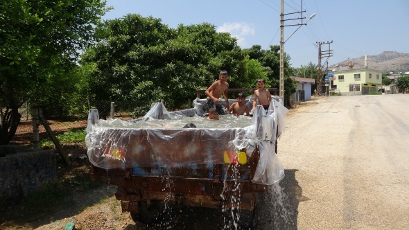 Mahallede kardeşleri ve mahallenin çocuklarını kanalda boğulmaya karşı korumak için traktörünün römorkunu havuza çeviren Burak Keklik, "Biz çiftçiyiz normalde tarla sürüyoruz. Ben dört kardeşim yeğenlerim mahallenin çocuklarına bu şekilde yardımcı olmaya çalışıyoruz. Hava sıcaklığı 45 derece var. Bir an önce havuzun açılmasını istiyoruz. Çocuklar kanala giderse boğulma riski var” diye konuştu.