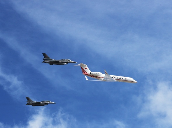 Cumhurbaşkanı Erdoğan`ı taşıyan ATA uçağına, Milli Savunma Bakanı Hulusi Akar da F 16 savaş uçağı ile eşlik etti.
