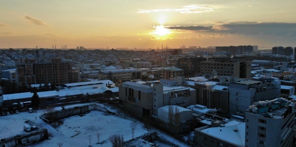 Kent genelinde gece saatlerinde etkili olan kar yağışının sabahın ilk ışıklarında oluşturduğu kartpostallık manzara havadan görüntülendi.
