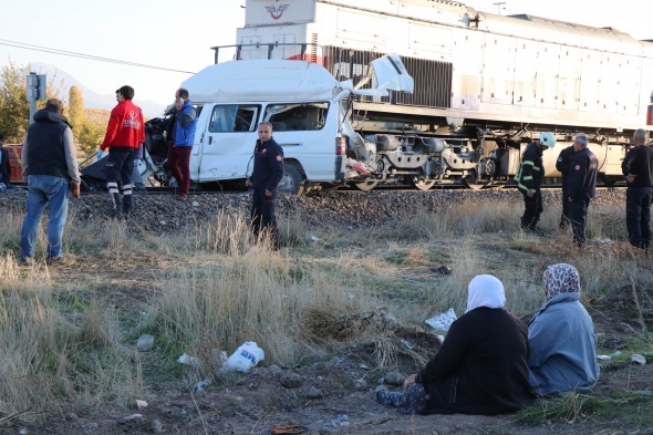 Kayseri’de hemzemin geçitte lokomotifin çarptığı minibüsteki karı koca hayatını kaybetti.