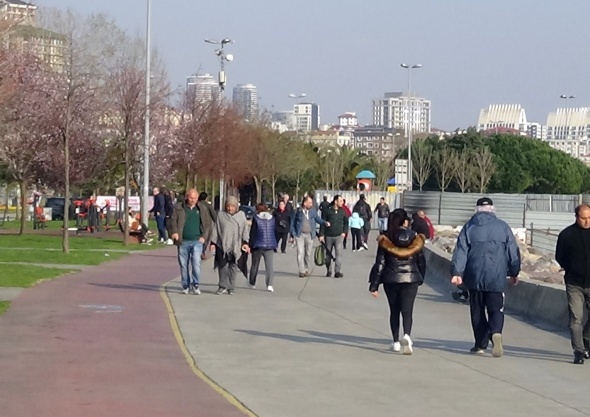 Başka bir vatandaş ise “Yapacak bir şey yok, ya çıkacaksınız ya da çıkmayacaksınız. Aramızda 1, 2 metre mesafeli yürüyoruz. Öyle kendimizi tatmin ediyoruz işin açıkçası” şeklinde konuştu.