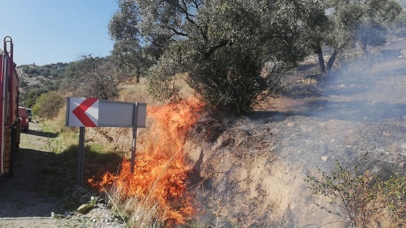 Edinilen bilgiye göre; öğlen saatlerinde Ortaklar-Çamlık arasında karayolu kenarındaki zeytin bahçesinde piknik yapan bir grubun yaktığı ateş, çevredeki kuru otları tutuşturunca yangın çıktı.
