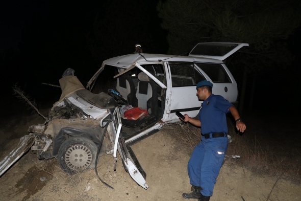 Yoldan çıkan otomobil ağaçlık alana uçtu: 1’i ağır 2 yaralı