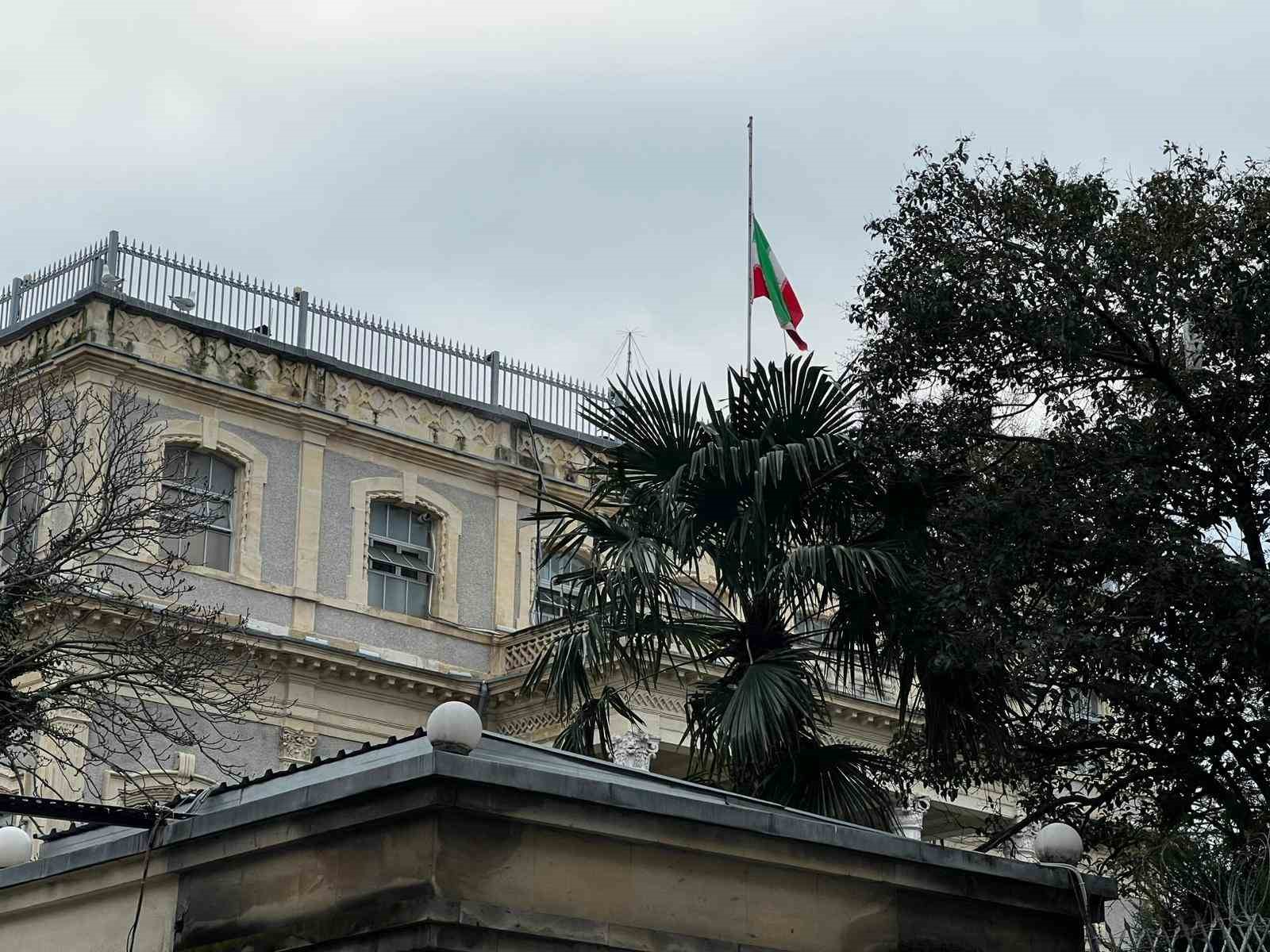 İstanbul’daki İran İslam Cumhuriyeti Başkonsolosluğu’nda bayrak yarıya indirildi. Amerika Birleşik Devletleri ile İsrail tarafından İran’a yönelik gerçekleştirilen saldırıların ardından can kaybı yaşanırken, İran Dini Lideri Ayetullah Ali Hamaney’de İsrail-ABD saldırısında hayatını kaybetti. Hamaney’in hayatını kaybetmesinin ardından ülke genelinde 40 gün ulusal yas ve 7 gün genel tatil ilan edildi. Alınan yas kararı kapsamında İstanbul’daki İran İslam Cumhuriyeti Başkonsolosluğu’nda bayrak yarıya indirildi.