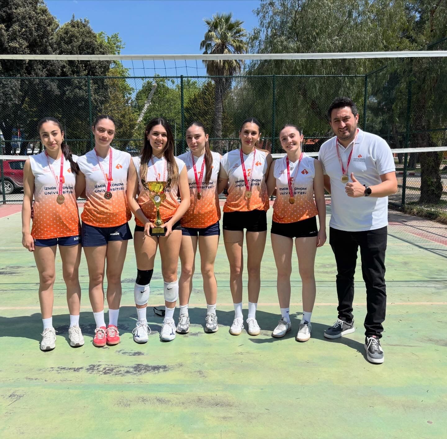 İzmir Ekonomi Üniversitesi’nin (İEÜ) yelken ve voleybol takımı, sezon geneline yayılan başarılarını ‘çifte kupa’ ile taçlandırdı. Kadın voleybol takımı, İzmir’de ilk kez düzenlenen Gençlik ve Spor Bakanlığı ÜNİ CUP müsabakalarını namağlup birinci tamamlayarak kupanın sahibi oldu. 8 kişilik yelken takımı da Jimmy Key Universail’da katıldığı tüm yarışlarda rakiplerini geride bırakarak ‘Destek C ve ‘Overall Destek’ kategorisinde kupaya ulaştı. Üniversite olarak öğrencilerin çok yönlü gelişimini desteklediklerini söyleyen İEÜ Spor Koordinatörü Murat Palalı, "Bu başarılar; disiplinin, takım ruhunun ve kararlılığın önemini bir kez daha gösterdi. Öğrencilerimizi yürekten kutluyor, onlarla gurur duyuyoruz" dedi. Urla İskele’de bu yıl 15’incisi düzenlenen Jimmy Key Universail Yelken Yarışları, toplam 31 takımın katılımıyla gerçekleşti. Son iki yıldır Jimmy Key’de kupaya ulaşmayı başaran İEÜ’lü gençler, bu sene de yarışlara damga vurarak seriyi 3 yıla çıkardı. İEÜ Kadın Voleybol Takımı ise, İzmir’de ilk kez düzenlenen GSB ÜNİ Cup müsabakalarını rakiplerine tek set bile vermeden tamamlayarak şampiyonluk kupasının sahibi oldu. Bunların yanı sıra İEÜ’lü gençler, oryantiring branşında ikincilik elde ederken, hado takımı ise turnuvayı üçüncü sırada tamamladı. Satrançta ise erkeklerde Arda Baran Gülhan üçüncü; kadınlarda da Bengisu Özyavuz ikinci, Ceyda Ece Han üçüncü oldu. E-Spor FC-26 bireysel kategoride de Berk Çilli ikincilik, Yağız Tolunay da üçüncülük elde etti. "Sporu kampüs geneline yayıyoruz" İEÜ Spor Koordinatörü Murat Palalı, ÜNİ Cup’taki satranç, e-spor ve oryantiring müsabakalarına üniversite olarak ev sahipliği yaptıklarına dikkat çekerek, kampüste sporun oluşturduğu olumlu etkinin artarak devam ettiğini ifade etti. Palalı, "Spor, bizim için yalnızca kazanılan kupalardan ibaret değil. Spor, aynı zamanda öğrencilerimizin gelişim yolculuğunun da en güçlü parçalarından biri. Gençlerimiz, spor sayesinde liderlik, sorumluluk alma ve birlikte başarma gibi hayat boyu taşıyacakları beceriler kazanıyor. Bu da onların hem akademik hem de kişisel yaşamlarında daha donanımlı bireyler olmalarını sağlıyor. İzmir Ekonomi Üniversitesi olarak, öğrencilerimizin bu çok yönlü gelişimini desteklemeyi çok önemsiyor; onların ulusal ve uluslararası platformlarda elde ettiği başarılardan gurur duyuyoruz" ifadelelerini kullandı.