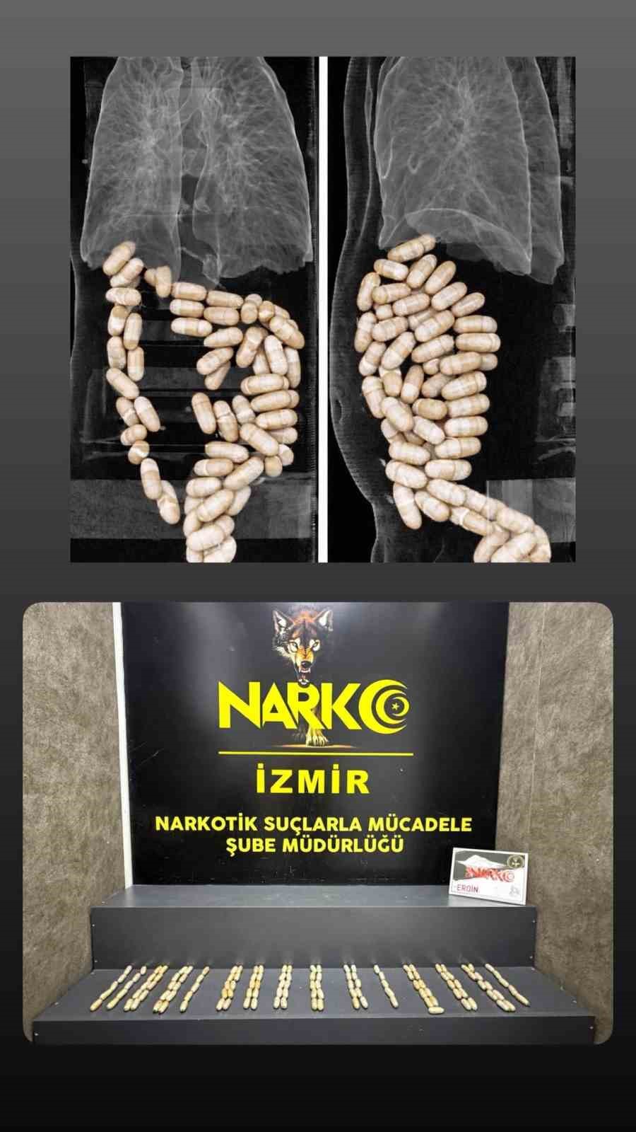 Yurt dışından hava yoluyla İzmir’e uyuşturucu getiren 2 şüpheli, polisin düzenlediği operasyonla yakalandı. Şüpheli şahısların midesinden 127 kapsül halinde 1 kilo 304 gram eroin çıkarıldı. Narkotik Suçlarla Mücadele Şube Müdürlüğü ekipleri, yurt dışından kente yutmak suretiyle uyuşturucu madde getirileceği bilgisi üzerine çalışma başlattı. Harekete geçen ekipler, Adnan Menderes Havalimanı’nda tespit edilen şüphelileri takibe alarak operasyon düzenledi. Yakalanarak hastaneye sevk edilen şüpheliler üzerinde iç beden muayenesi yapıldı. Yapılan muayene sonucunda şahısların midesinde uyuşturucu madde tespit edildi. Gerçekleştirilen tıbbi müdahaleyle şüphelilerin midesinden 127 kapsül halinde yutulmuş toplam 1 kilo 304 gram eroin çıkarıldı. Operasyon kapsamında gözaltına alınan E.E. ve N.M. isimli şüpheliler, emniyetteki işlemlerinin ardından mahkemece tutuklanarak cezaevine gönderildi.