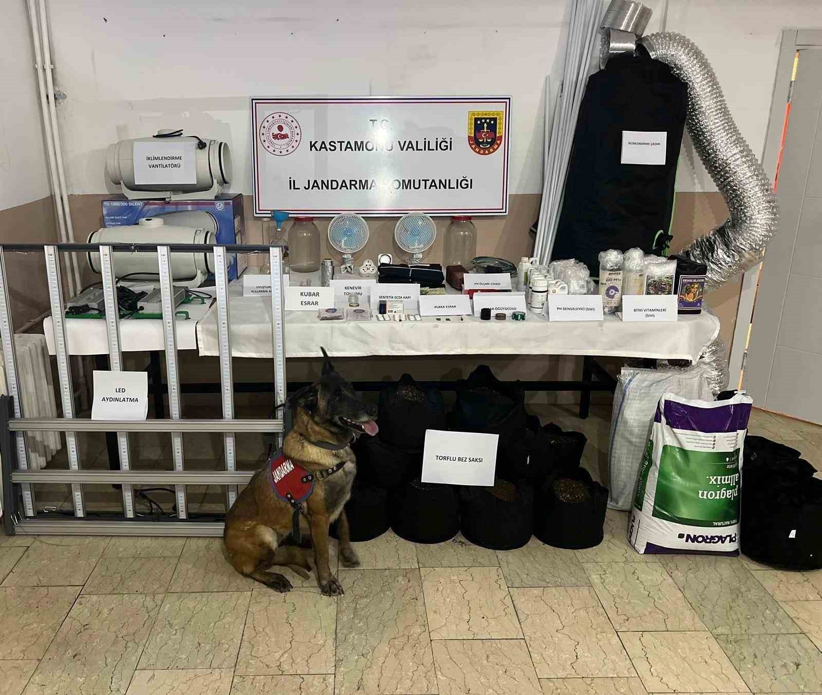 Kastamonu’da jandarma ekipleri tarafından gerçekleştirilen uyuşturucu operasyonlarında 6 şüpheli gözaltına alındı. Edinilen bilgiye göre, Kastamonu İl Jandarma Komutanlığı ekipleri tarafından uyuşturucu ticaretinin önlenmesi kapsamında yapılan operasyonlarda, 2 gram metamfetamin, 5 gram bonzai, 2 gram kannabinoid maddesi, 4 gram esrar, 2 adet sentetik ecza hapı, 13 adet kenevir tohumu, 1 adet iklimlendirme çadırı, 2 adet iklimlendirme ışık düzeneği, 2 adet iklimlendirme vantilatörü, 1 adet pH metre, 17 adet bez saksı, 2 adet havalandırma sistemi, 3 adet uyuşturucu öğütme değirmeni, 26 adet bitki yetiştirme ilacı, 11 adet uyuşturucu kullanma aparatı, 31 adet kalem parfüm şişesi, 4 adet alüminyum folyo rulosu, 19 adet pürümüz çakmak ele geçirildi. Konuyla ilgili gözaltına alınan 6 şüpheli hakkında adli işlem başlatıldı.