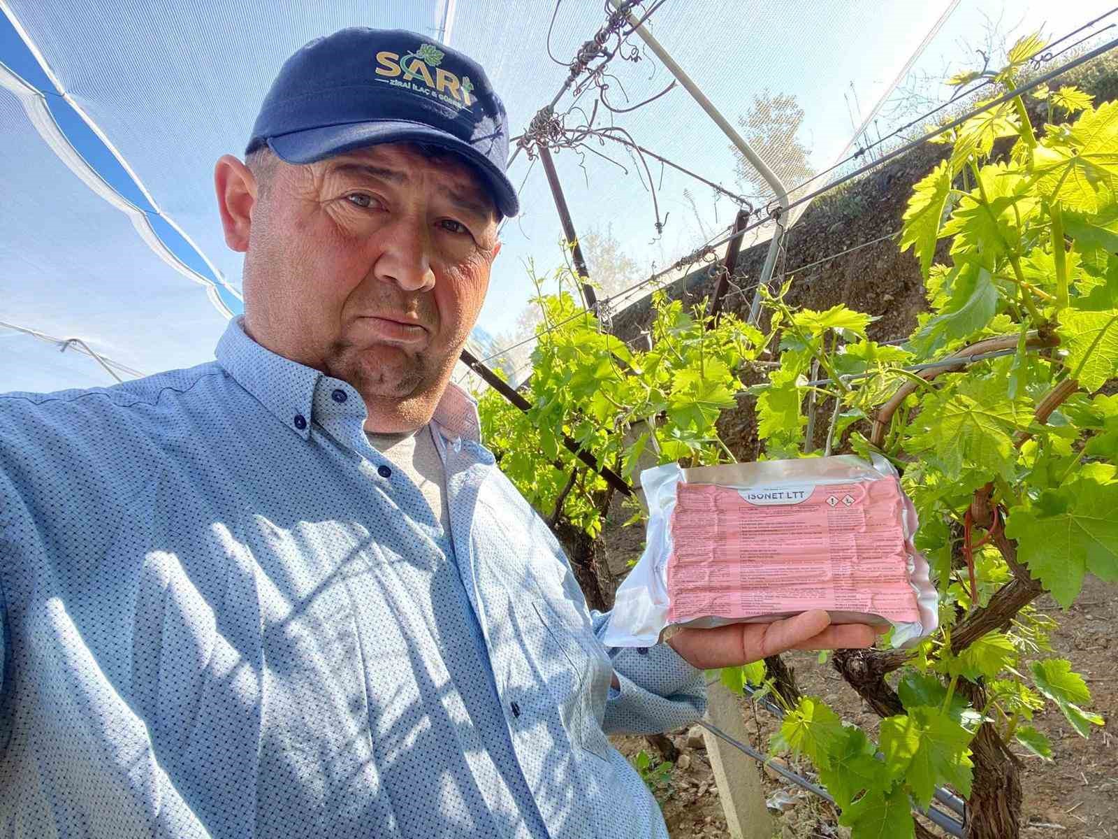 Manisa’nın Sarıgöl ilçesinde dünyaca ünlü Sultaniye üzüm bağlarında üreticiler, zararlılara karşı ’fenomen tel’ yöntemiyle önlem almaya başladı. Halk arasında ’Japon tuzağı’ olarak da bilinen sistem, bağları unlu bit ve kurtçuklardan koruyor. Sarıgöl Ovası’nın dünyaca ünlü çekirdeksiz sofralık Sultaniye üzüm bağlarında üreticiler, 2026 yılı ürünlerini zararlılardan korumak için ’fenomen tel’ yöntemiyle mücadeleye başladı. Halk arasında ’Japon tuzağı’ olarak da bilinen fenomen tel sistemi, üzüm bağlarında unlu bit ve kurtçuk gibi zararlıların yayılmasını engellemek amacıyla kullanılıyor. İki veya üç asma aralıklarla bağlanan özel tellerin yaydığı koku sayesinde dişi ve erkek zararlıların buluşması önleniyor. Yıllardır Sarıgöl ovasında uygulanan yöntem, üreticiler tarafından etkili bir koruma sistemi olarak görülüyor. Sarıgöllü üretici Hüseyin Karcı, Emcelli Mahallesi’nde başlattıkları çalışmayı şu sözlerle anlattı: "2026 yılı ürünlerimiz için üzüm bağlarımızda fenomen tel uygulamasına başladık. Unlu bit için beş metre, kurtlar için yedi metre aralıklarla tellerimizi bağlıyoruz." İlçede bağlarda çalışmaların önümüzdeki günlerde de devam edeceği öğrenildi.