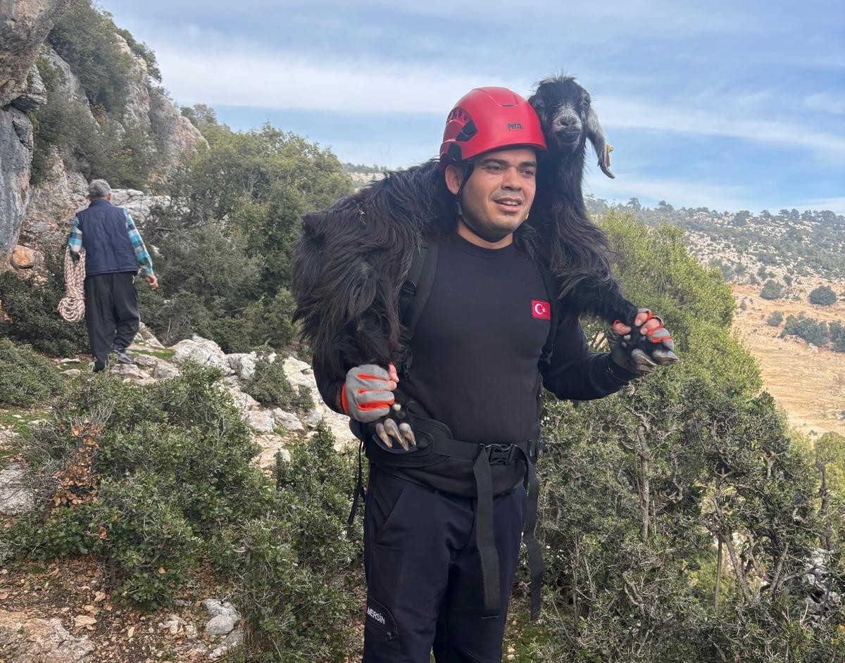 Mersin’de kayalıklarda mahsur kalan 2 keçi itfaiye ekiplerince kurtarıldı