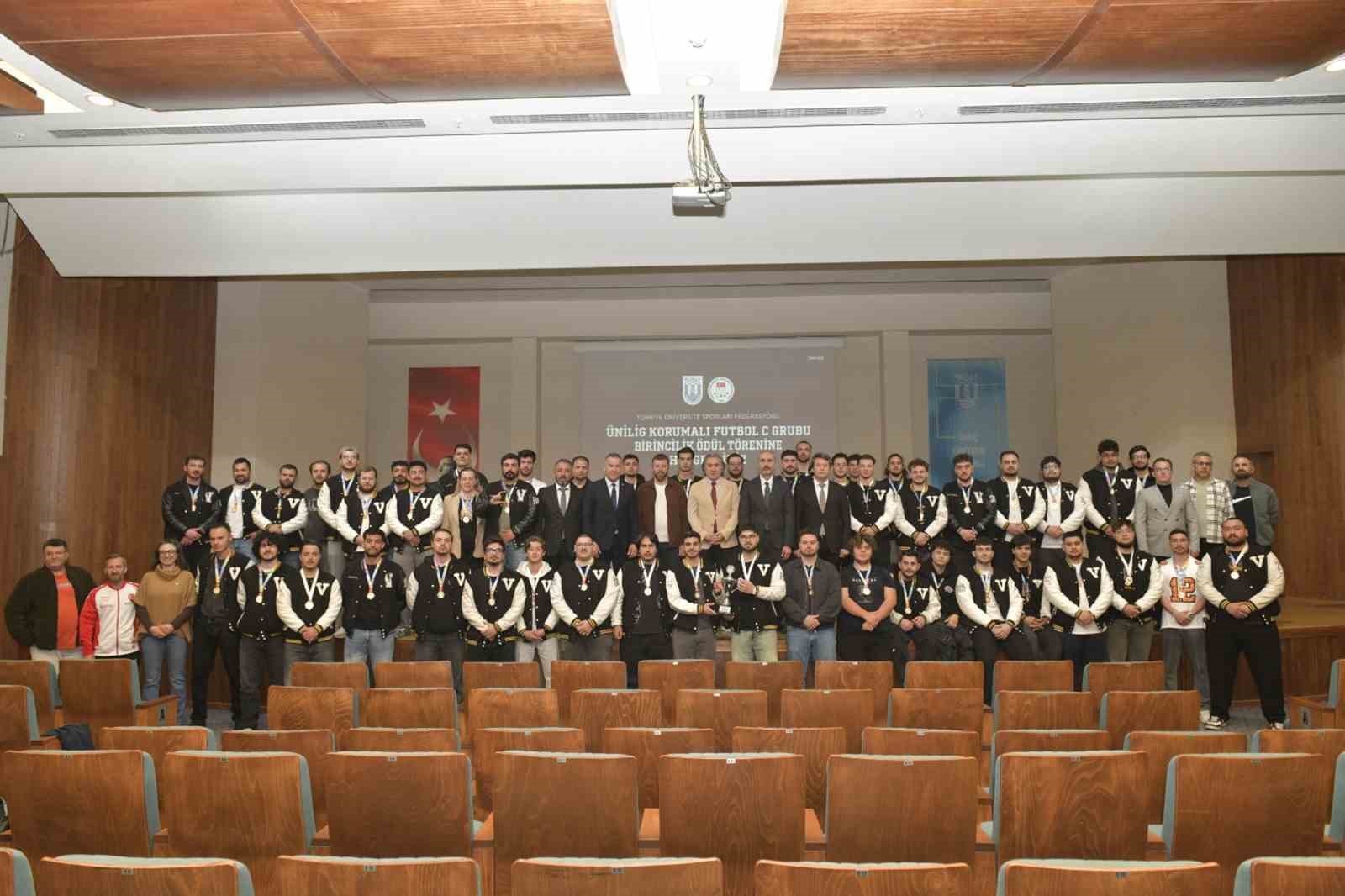 MSKÜ Korumalı Futbol Takımı, Türkiye Üniversite Sporları Federasyonu (TÜSF) tarafından düzenlenen ÜNİLİG Korumalı Futbol 1. Ligi A Grubu’nda şampiyon olarak Süper Lig’e yükseldi. Muğla Sıtkı Koçman Üniversitesi (MSKÜ), birçok spor dalında olduğu gibi korumalı futbolda da üstün başarı göstererek adından bir kez daha söz ettirdi. Türkiye Üniversite Sporları Federasyonu (TÜSF) tarafından düzenlenen ÜNİLİG Korumalı Futbol 1. Ligi A Grubu’nda mücadele eden Muğla Sıtkı Koçman Üniversitesi Korumalı Futbol Takımımız, grubunu birinci sırada tamamlayarak Süper Lig’e yükselme başarısı gösterdi. Ödül töreni, MSKÜ Atatürk Kültür Merkezi’nde TÜSF Federasyon Başkanı ve aynı zamanda Bayburt Üniversitesi Rektörü Prof. Dr. Mutlu Türkmen ve Genel Sekreteri Dr. Mehmet Yönal’ın katılımıyla yapıldı. MSKÜ Rektör Yardımcısı Prof. Dr. Mustafa Gökçe, Spor Bilimleri Fakültesi Dekanı Prof. Dr. Özcan Saygın, Dekan Yardımcısı Prof. Dr. Tonguç Osman Mutlu, Öğr. Gör. Zeynep Aydoğan ve akademisyenlerin yer aldığı ödül töreninde, sporculara kupa ve madalyaları protokol tarafından takdim edildi.