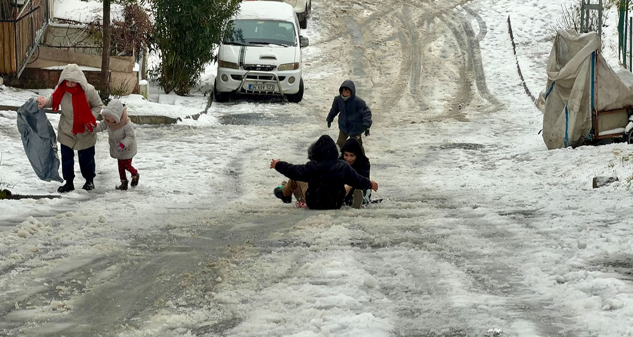 Küçükçekmece’de çocukların yaptığı kardan adamı götürdü