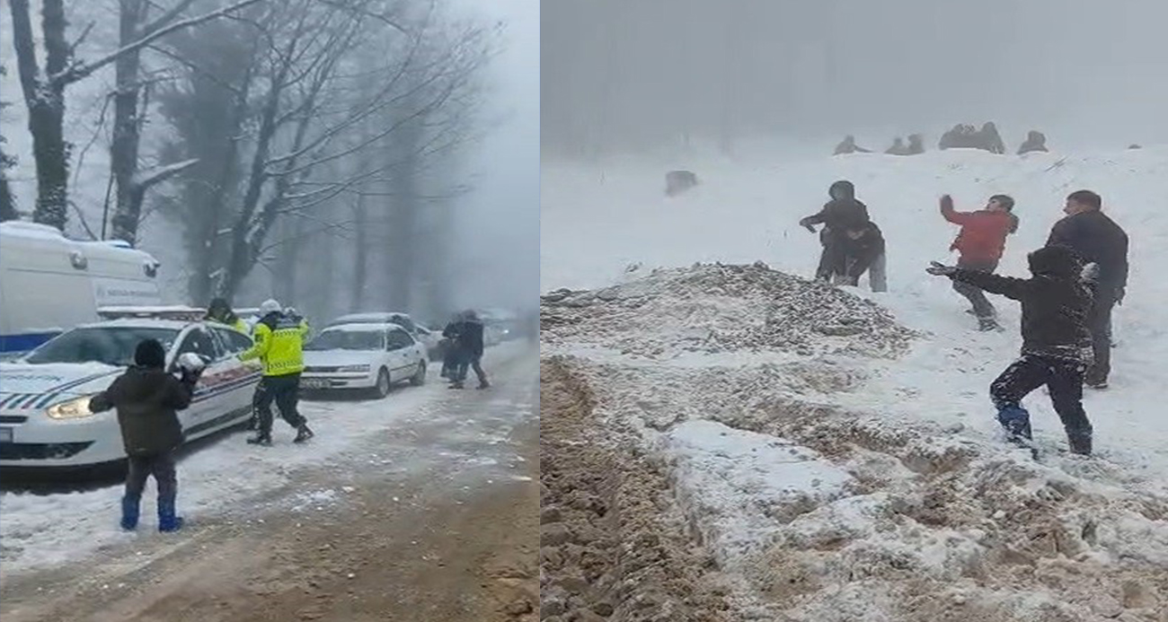 Soğuk havada sıcak görüntüler: Jandarma çocuklarla kar topu savaşı yaptı
