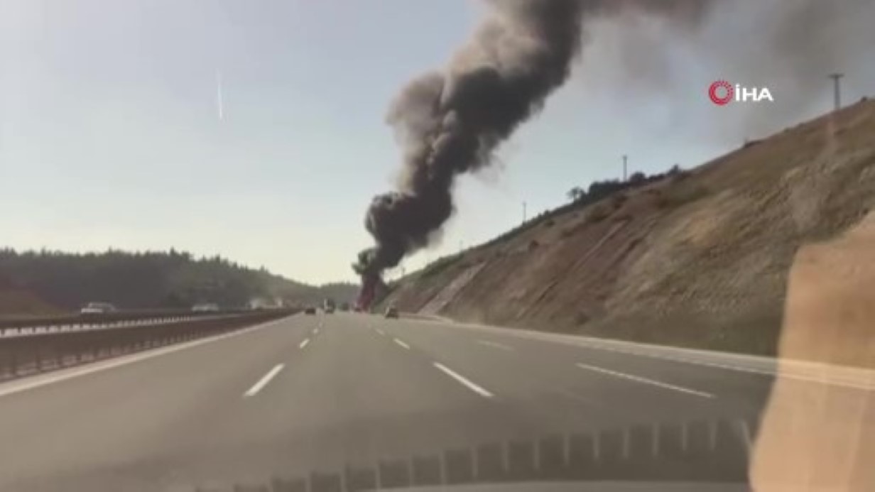 Kuzey Marmara Otoyolu'nda beton pompası alev alev yandı