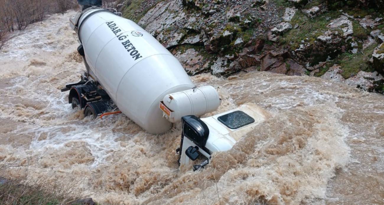 Tatvan'da beton mikseri dereye uçtu