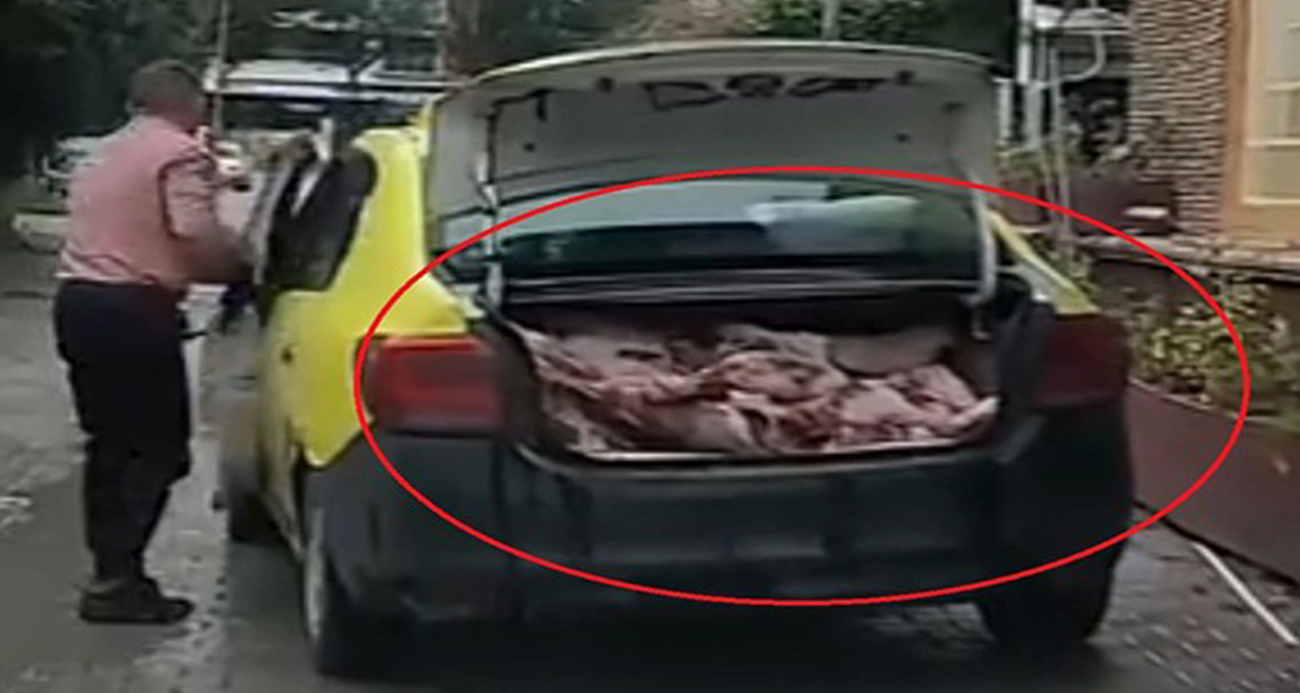 Taksinin bagajında uygunsuz şartlarda et sevkiyatı kameraya yansıdı