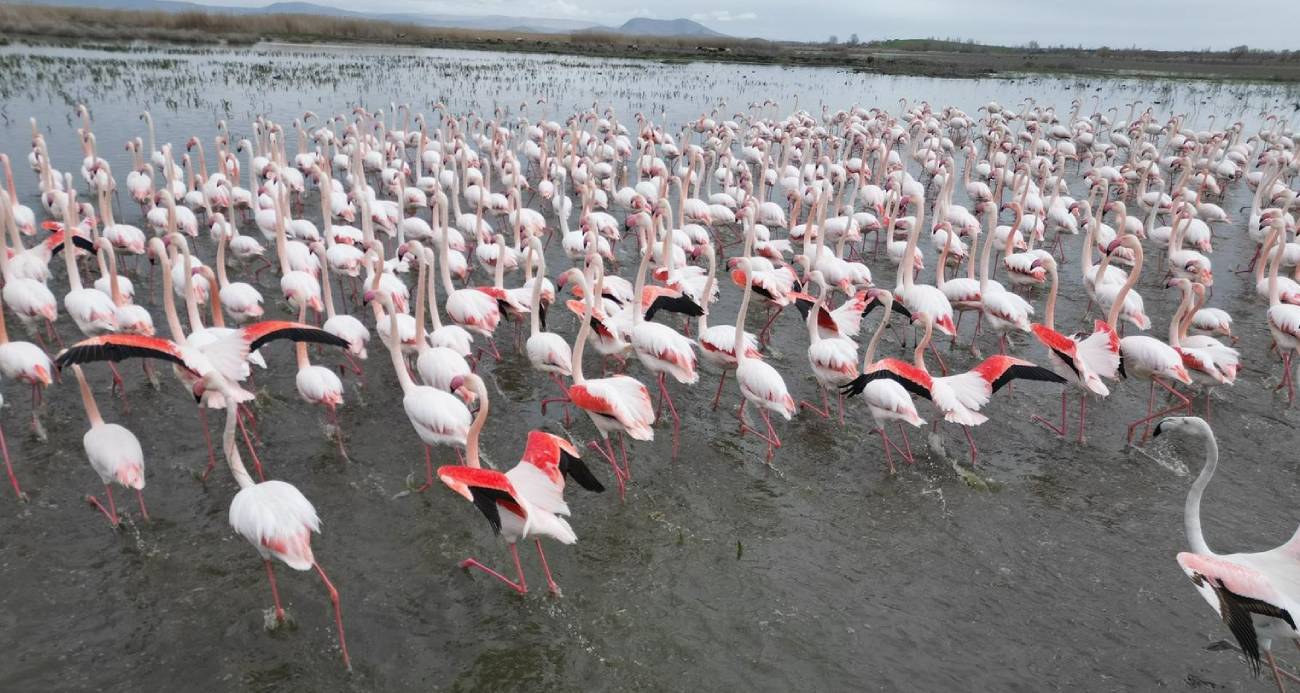 Eber Gölü'nde görsel şölen: Flamingolar renkli görüntüler oluşturdu