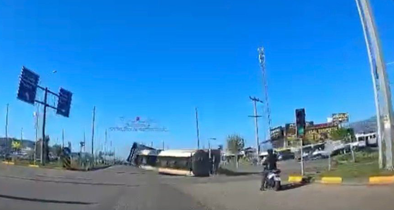Kavşakta kontrolden çıkan tır devrildi: Faciadan dönülen kaza kamerada